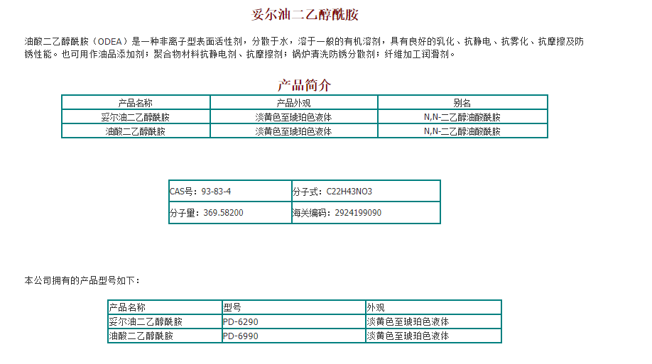 羧酸衍生物 妥尔油二乙醇酰胺 CAS 93-83-4 有效物质含量99